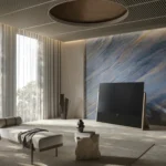 The contrasting contours of the walls and window openings are an interesting design solution that added graphic to the interiors of this Madrid apartment in Madrid and set them to an eclectic mood.